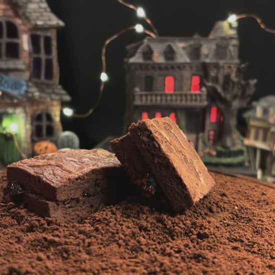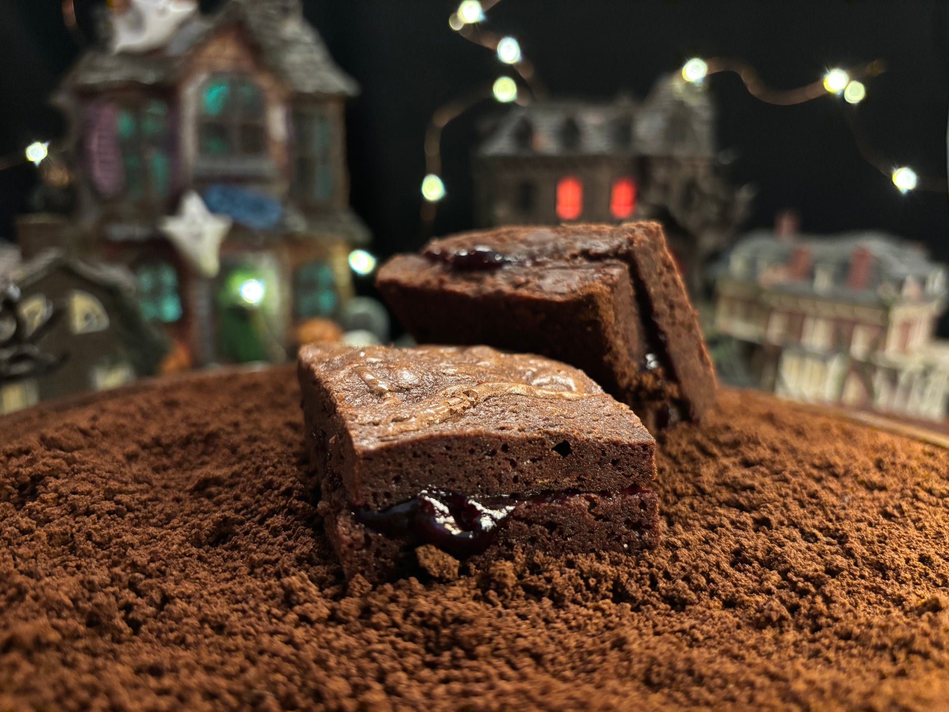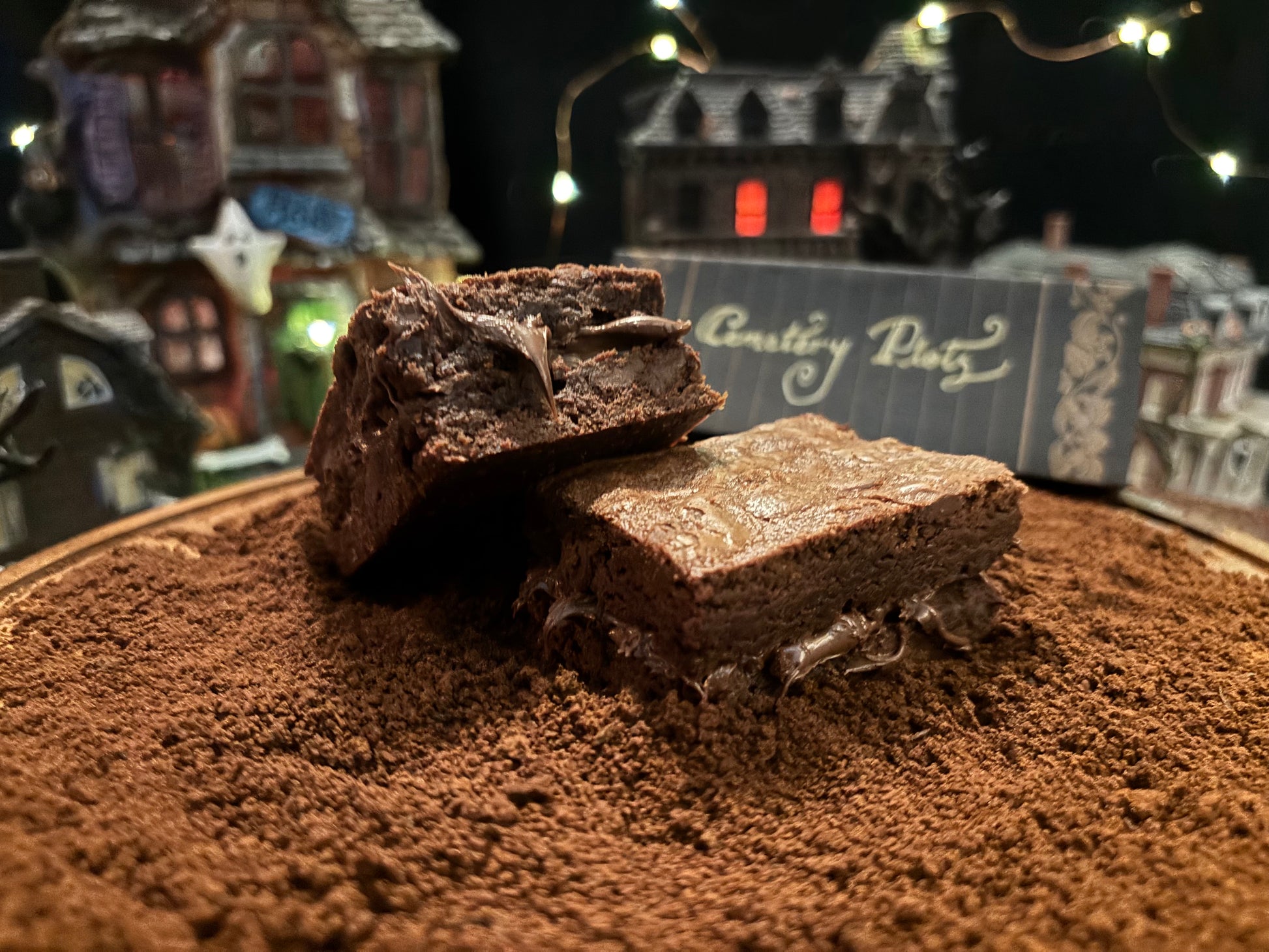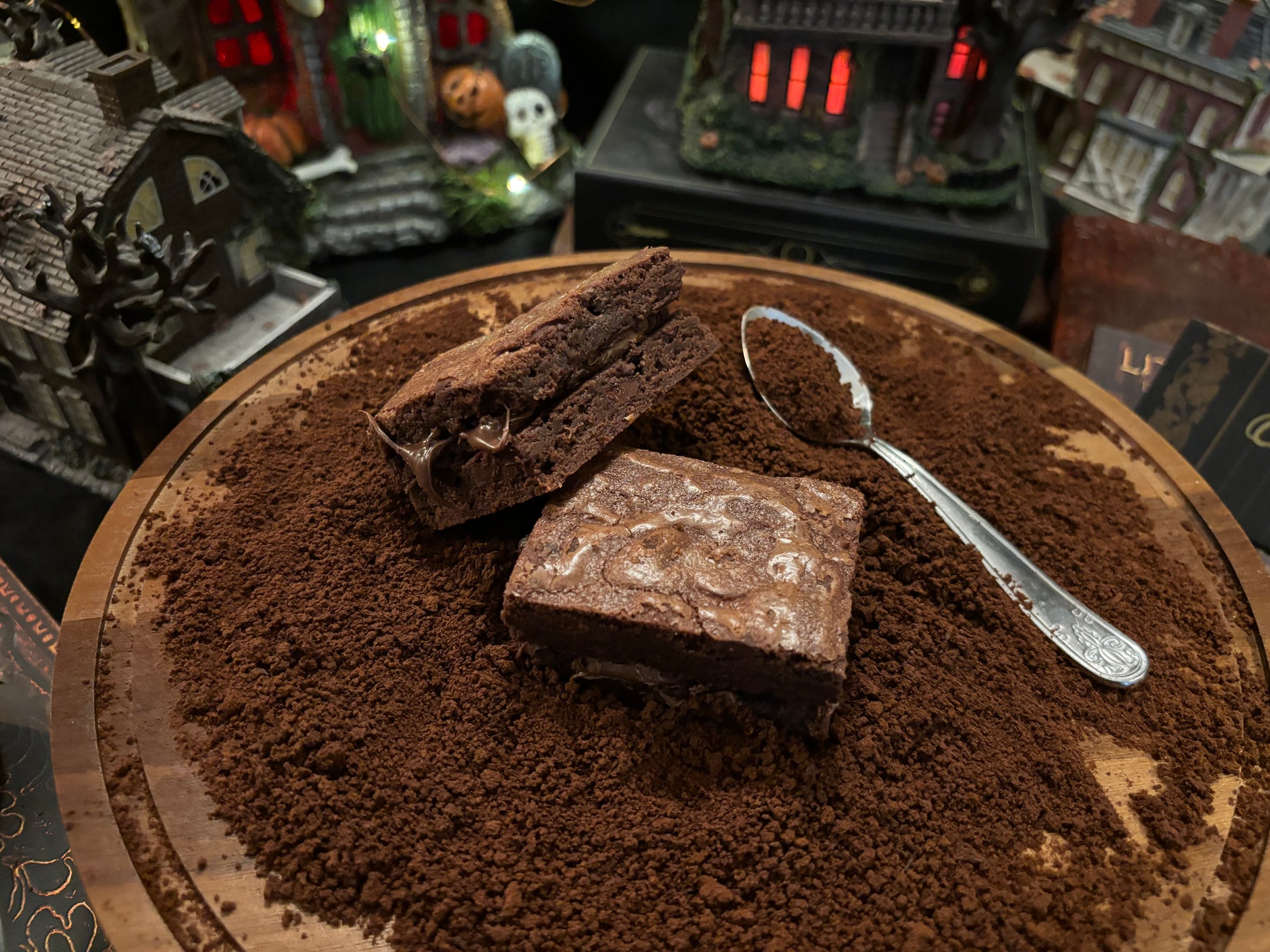 A fudgy, death-by-chocolate brownie so dark that light barely escapes it! Eating one will give you a near-life experience!