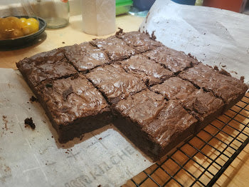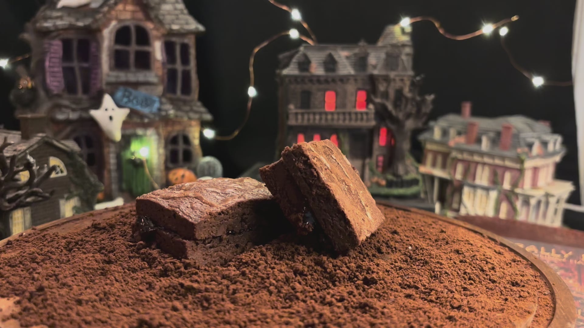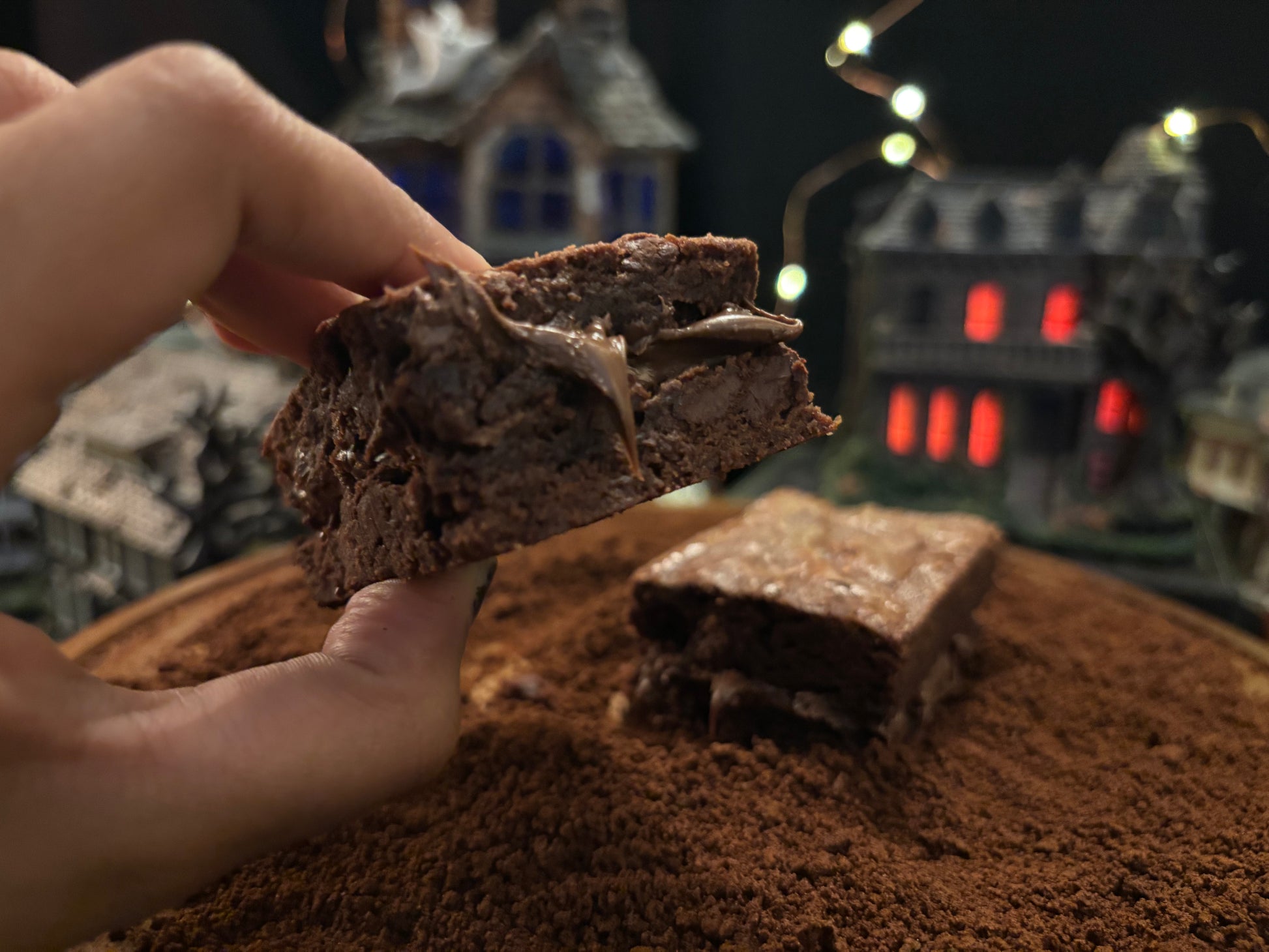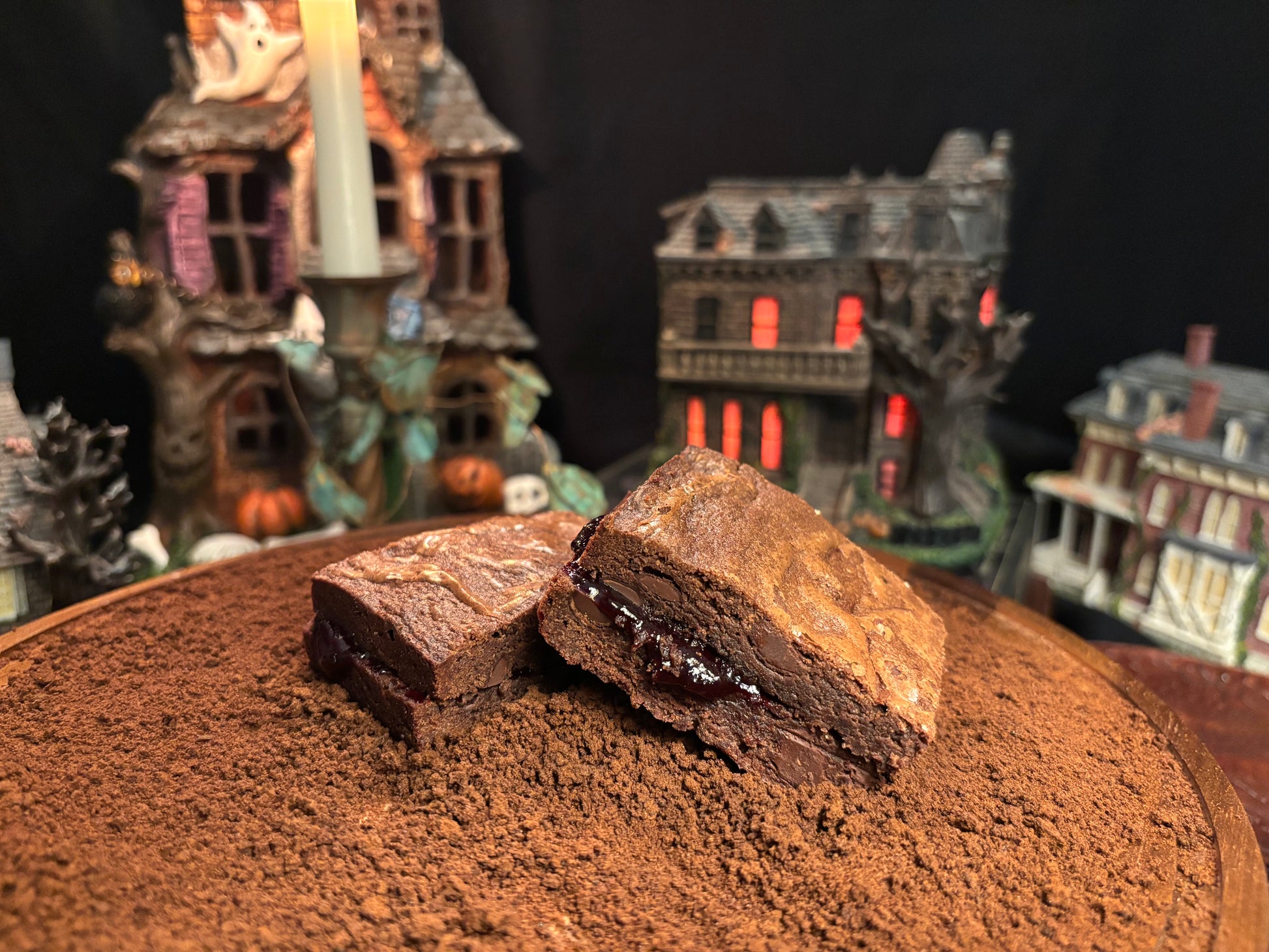 A fudgy, death-by-chocolate brownie so dark that light barely escapes it! Eating one will give you a near-life experience!