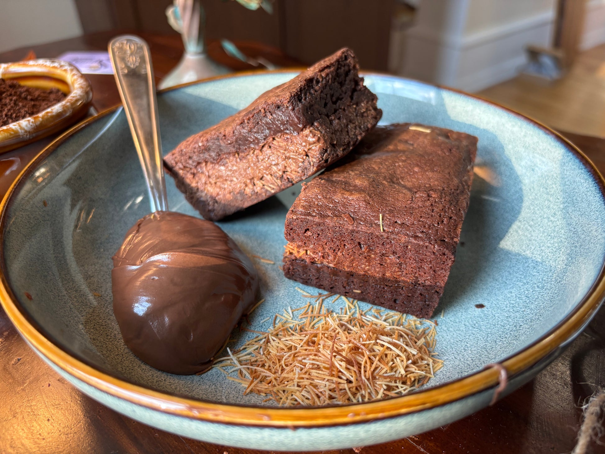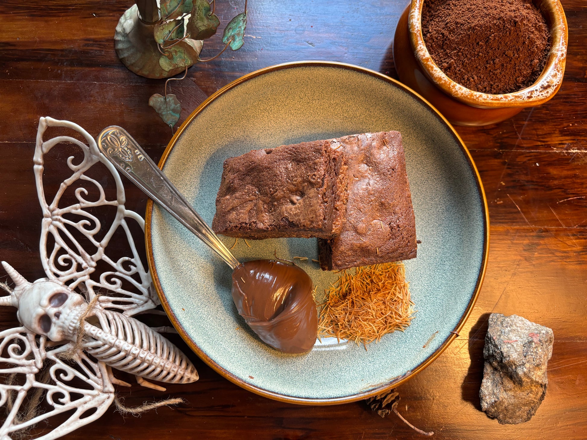 The pharaoh's own recipe that he loved so much that he had it interred with his remains! We wrapped our fudgy brownie around a core of Nutella, shredded phyllo dough and tahini paste to create a crunchy, nutty treat that hasn't seen the light of day in almost 4,000 years!